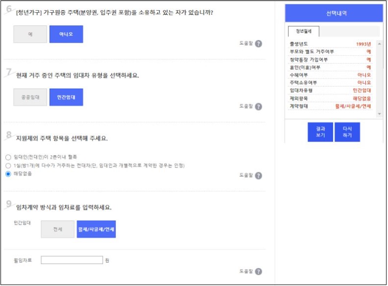 청년월세지원 '마이홈포털' 모의계산하기