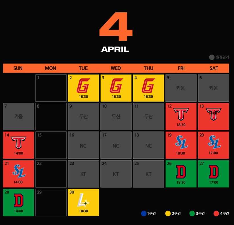 | 4/12-4/14 | 주말 | 기아타이거즈 | 4구간 |