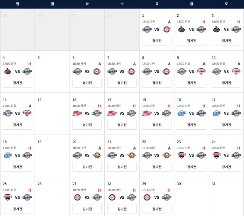 | 8/27-8/29 | 두산베어스 | 주중 |