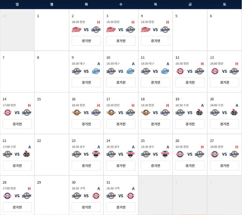 'NC다이노스' 8월 홈경기 일정
